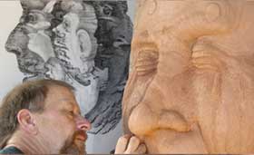 The twist of an individual’s imagination is one trait that accounts for our different perceptions of reality. As a child I would fall asleep seeing faces in the woodgrain wallpaper of my bedroom. Throughout my education artists who were unique in their approach to creating unusual and somewhat dark work inspired me. From the writings of Edger Allen Poe to early monster movies, I have always been interested in the things of Art and life that are mysterious and unusual. Heironymous Bosch’s and Giuseppi Archemboldo’s bizarre paintings, Leonardo Da Vinci’s grotesque faces and the bold expressions of Francisco Goya make it clear to me that “Art” does not have to be tame stuff. Later, I was attracted to the surrealists for their pulsing atmospheric landscapes and to Francis Bacon, for his gutsy emotionally twisted portraits. I became interested in psychology, the Rorschach inkblot test, caves, and Mauritz Escher’s reversals of space and form. For the last 35 years, I have been teaching Art and producing ceramic sculpture in an abstracted figurative style. I work with graphite on paper for the directness of process while I love working with clay for its skinlike plasticity and pyromanic produced permanence.